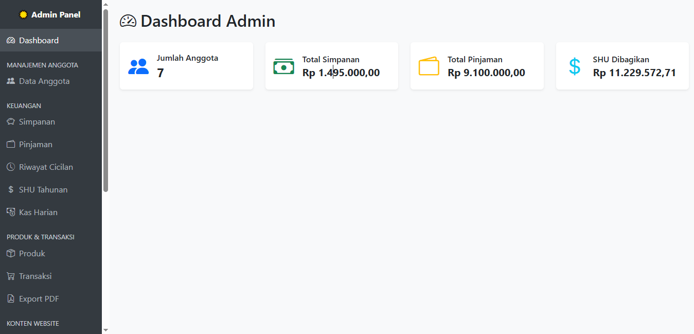 Script ini adalah sistem siap pakai yang sudah membantu banyak koperasi punya website profesional, lengkap dengan fitur simpan pinjam, laporan, manajemen anggota, SHU, bahkan bisa dijual ulang dengan merek sendiri.