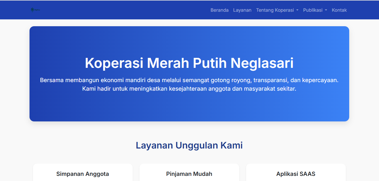 Tampilkan profil koperasi, galeri foto, dan informasi layanan secara profesional untuk publik