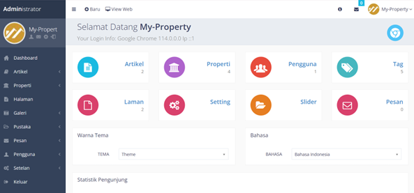 Dashboar Admin ini memiliki fitur sangat lengkap, sehingga anda bisa mengganti setiap fitur website secara mudah, menambah Blog, artikel, menambah Galeri dan Property semua dilakukan hanya dalam dashboard